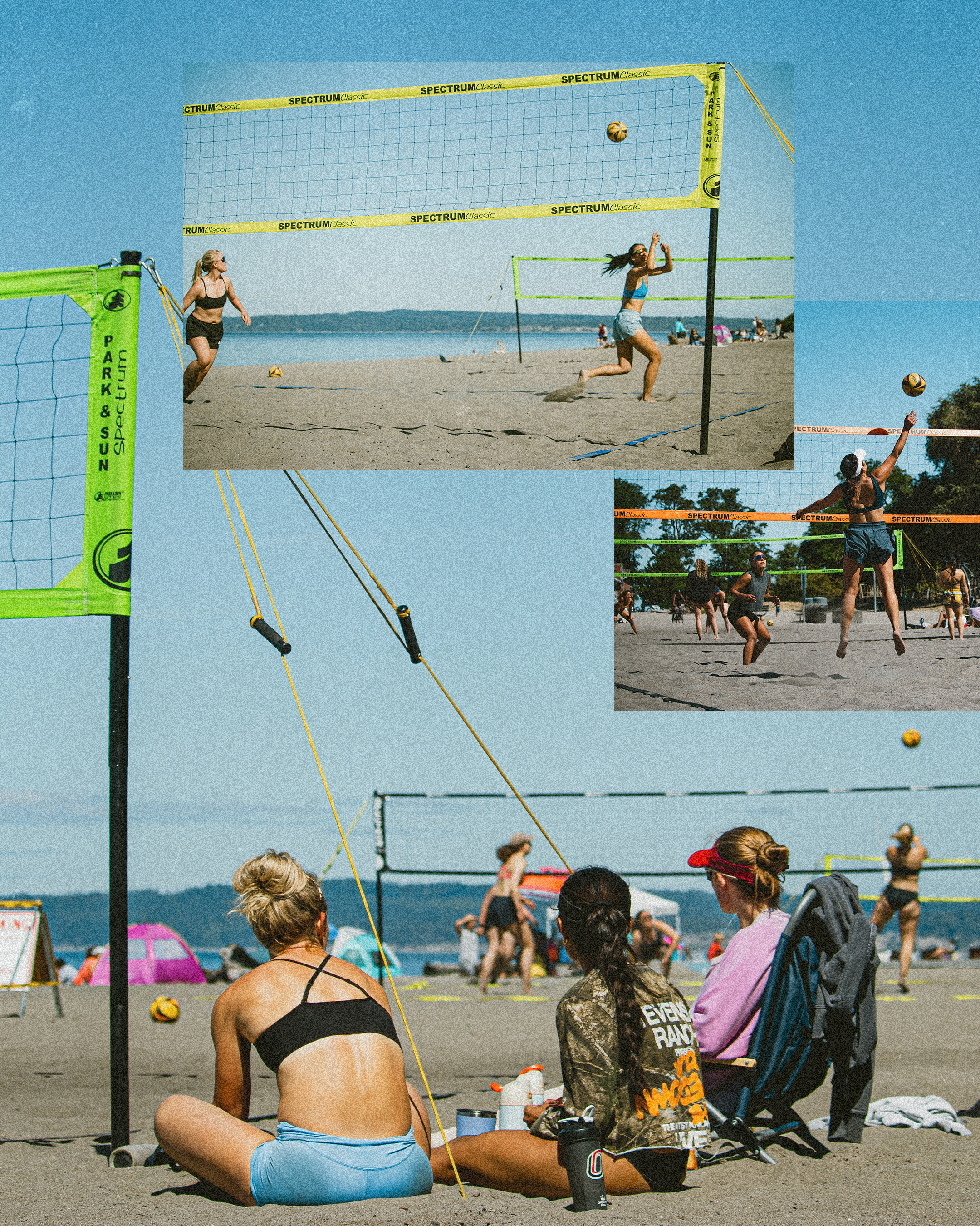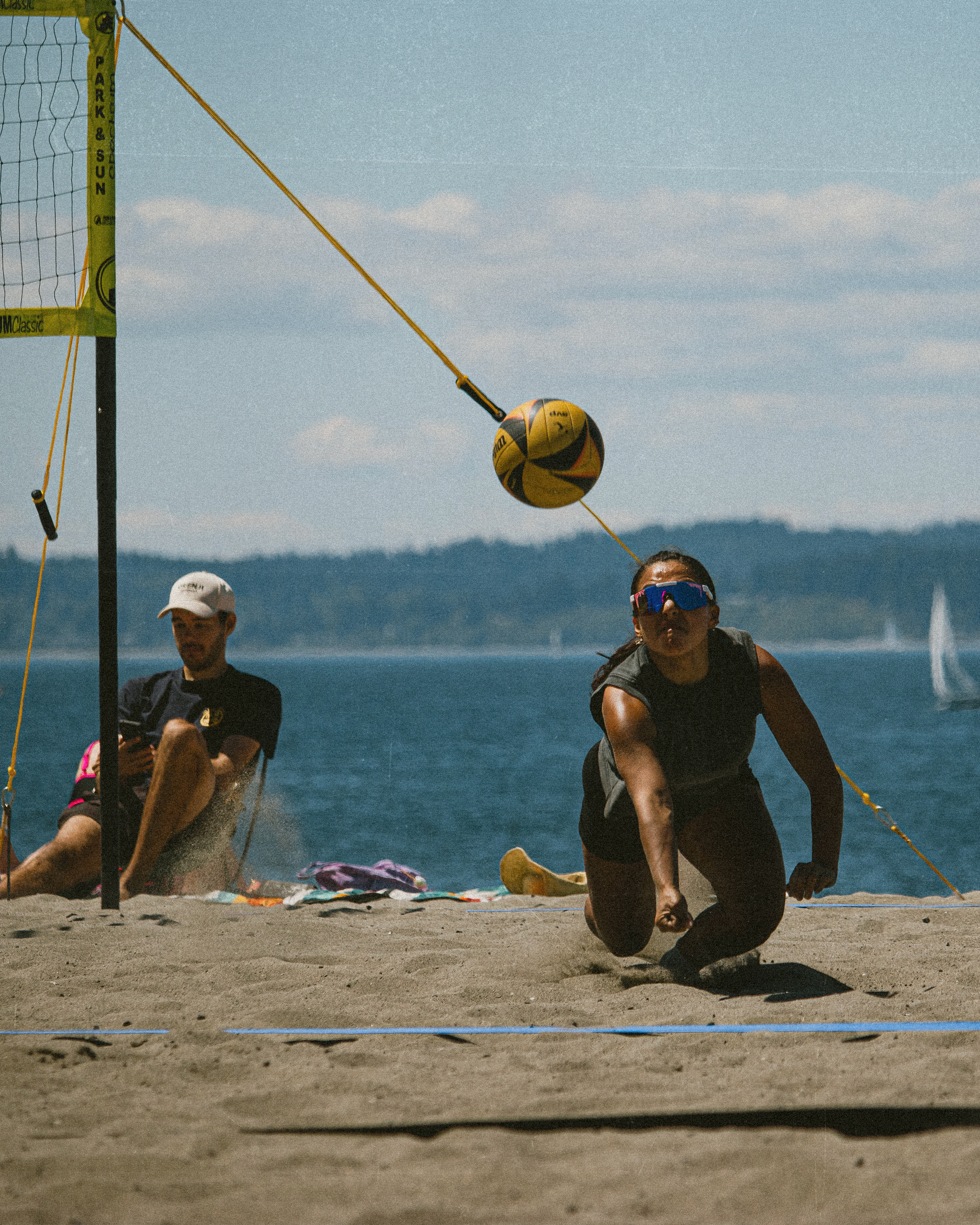 The Seattle Beach Volleyball Co-Op is alive and well on a Saturday at Golden Gardens.